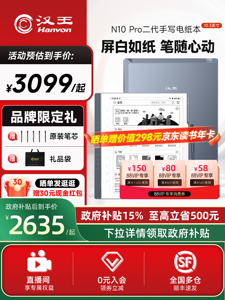 【Большой новый продукт】 Hanwang N10pro Руповеденная электрическая бумага второго поколения 10,3-дюймовая электронная книга электронная книга для чтения Читатель Читатель Читатель Экран Электронный ноутбук Ай Интеллектурный офис Книга