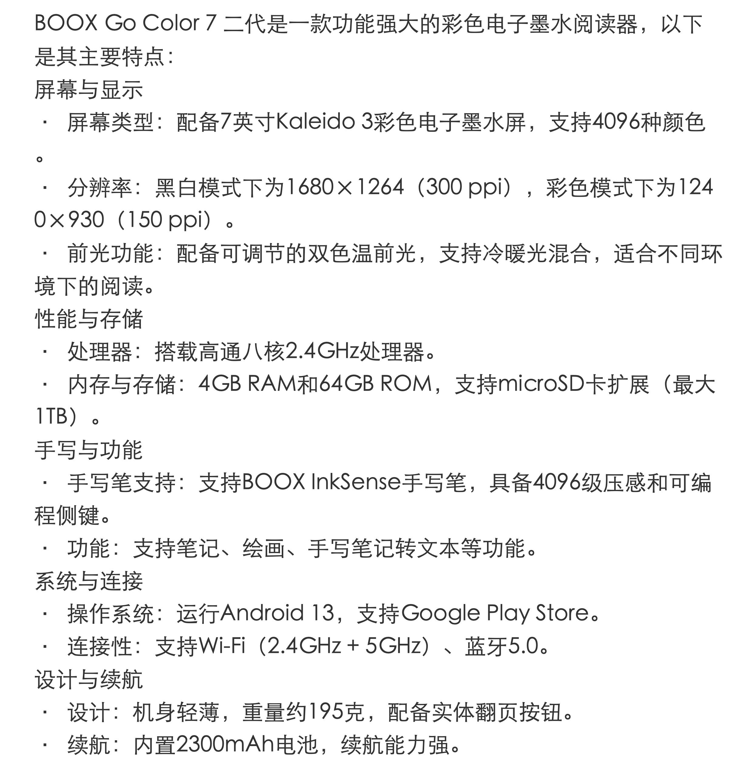 BOOX Устройство чтения электронных книг Go 7 2-го поколения с цветным экраном, стилус InkSense, зарубежная версия