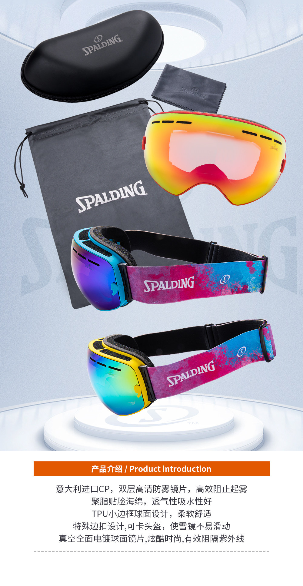 Spalding, лыжные очки подходит для мужчин и женщин, двухэтажное лыжное снаряжение без запотевания стекол