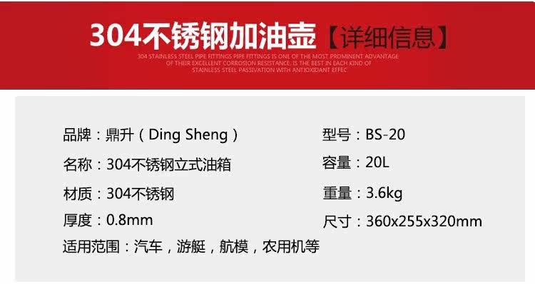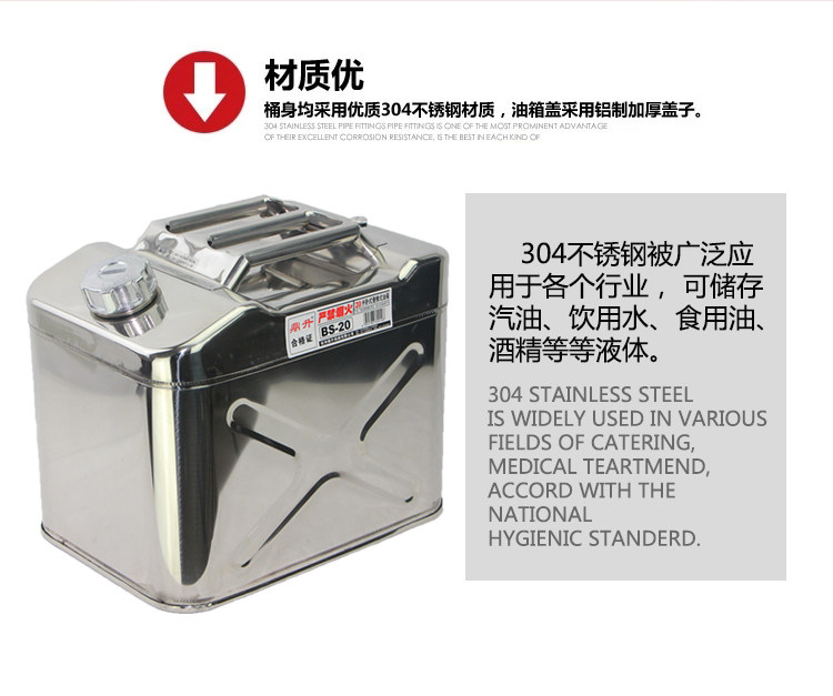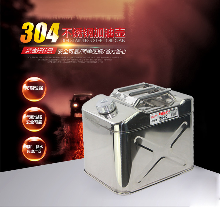 Dingsheng 20-литровый 10-литровый топливный бак из нержавеющей стали BS-20, портативная масляная бутылка для бензина и дизельного топлива, утолщенный запасной топливный бак