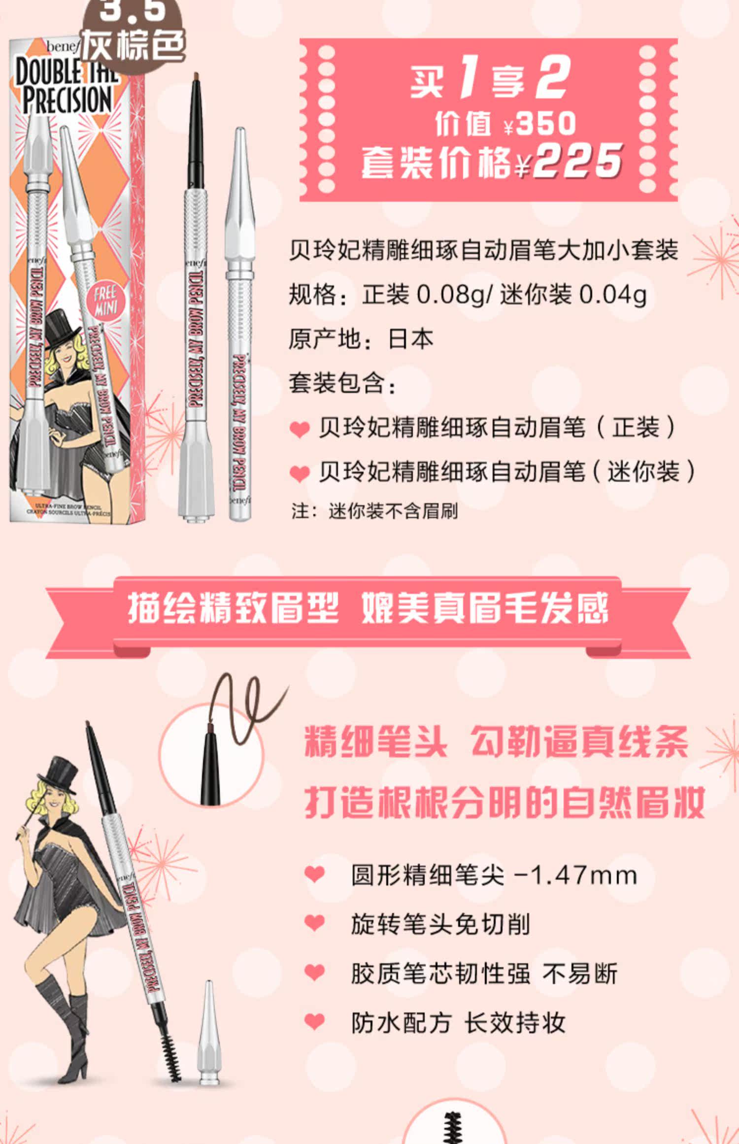 Benefit/贝玲妃 Автоматический карандаш для бровей, коричневый комплект, долговременный эффект, не стирается
