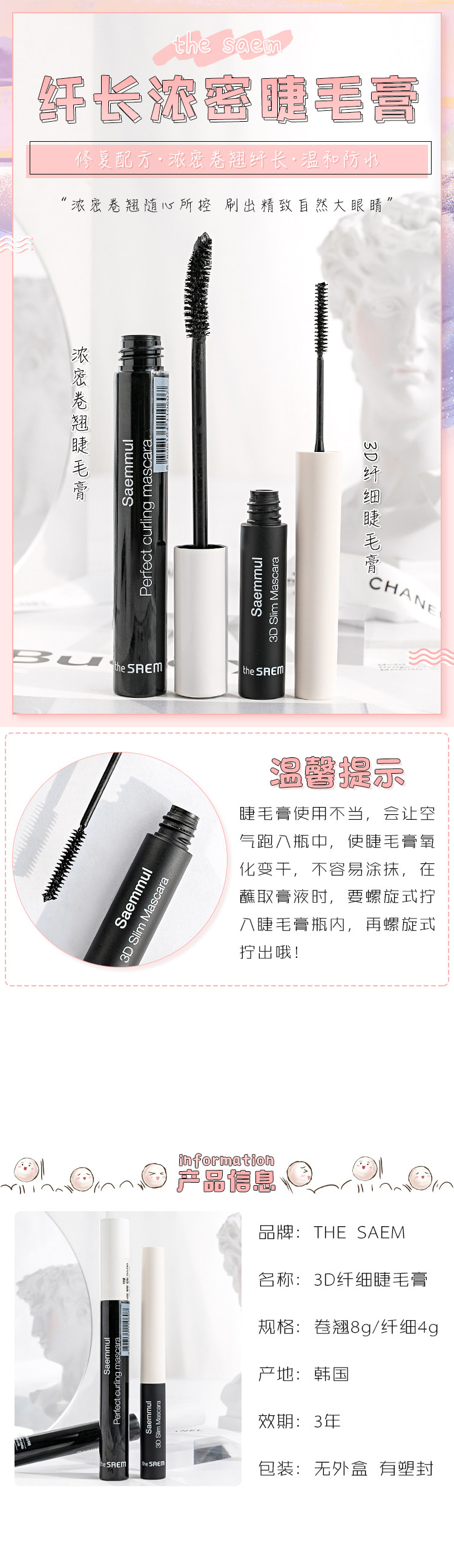 Удлиняющая водостойкая плотная завивающая тушь, Южная Корея, 3D, не растекается, натуральный объём
