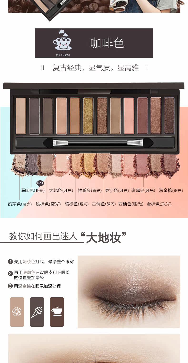 Матовые многоцветные палетка теней, база под макияж, в коричневых тонах