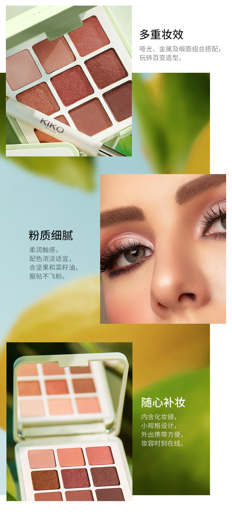 KIKO Матовые портативные палетка теней, 9 цветов, долговременный эффект, не растекается