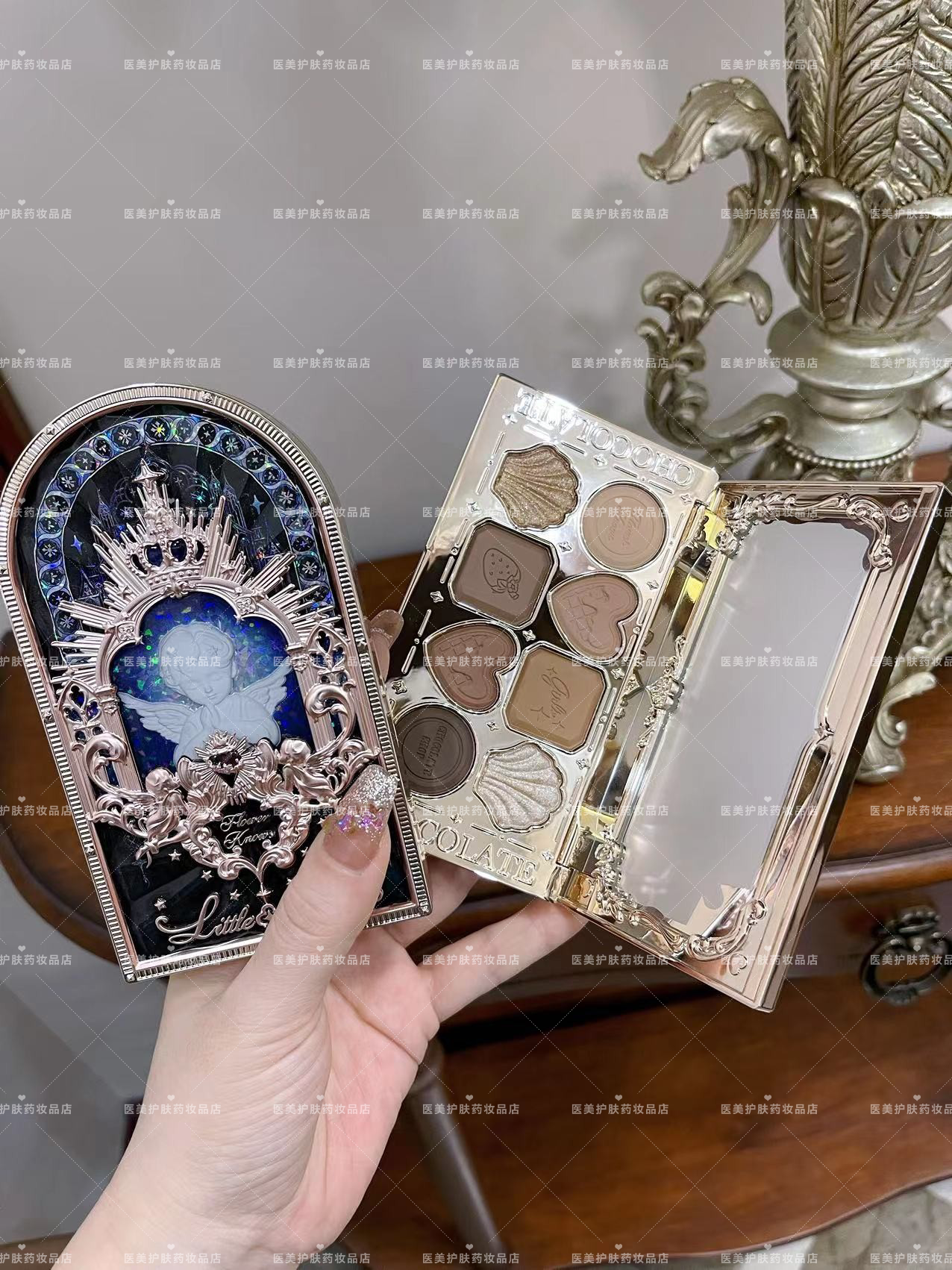 Палетка теней, акриловый лебедь, матовые румяна, в коричневых тонах