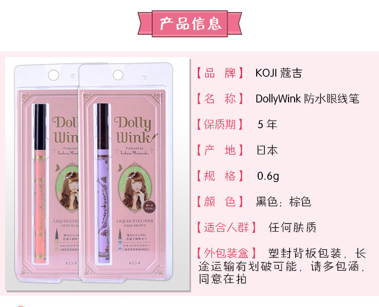 Японская подводка для глаз Koji Dolly Wink чрезвычайно тонкая, если крыло не обрушивается на водонепроницаемую подводку для глаз, бесплатная доставка