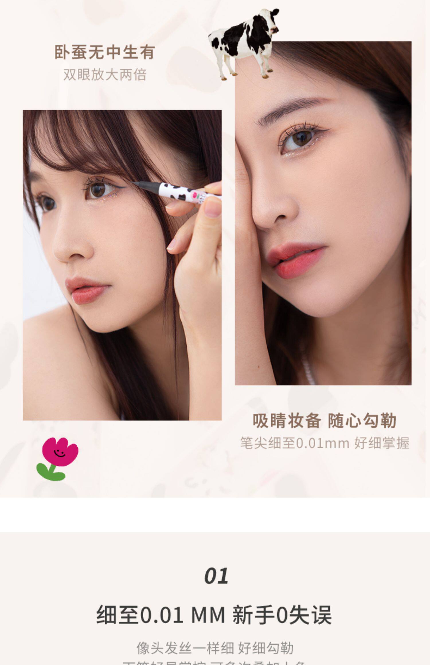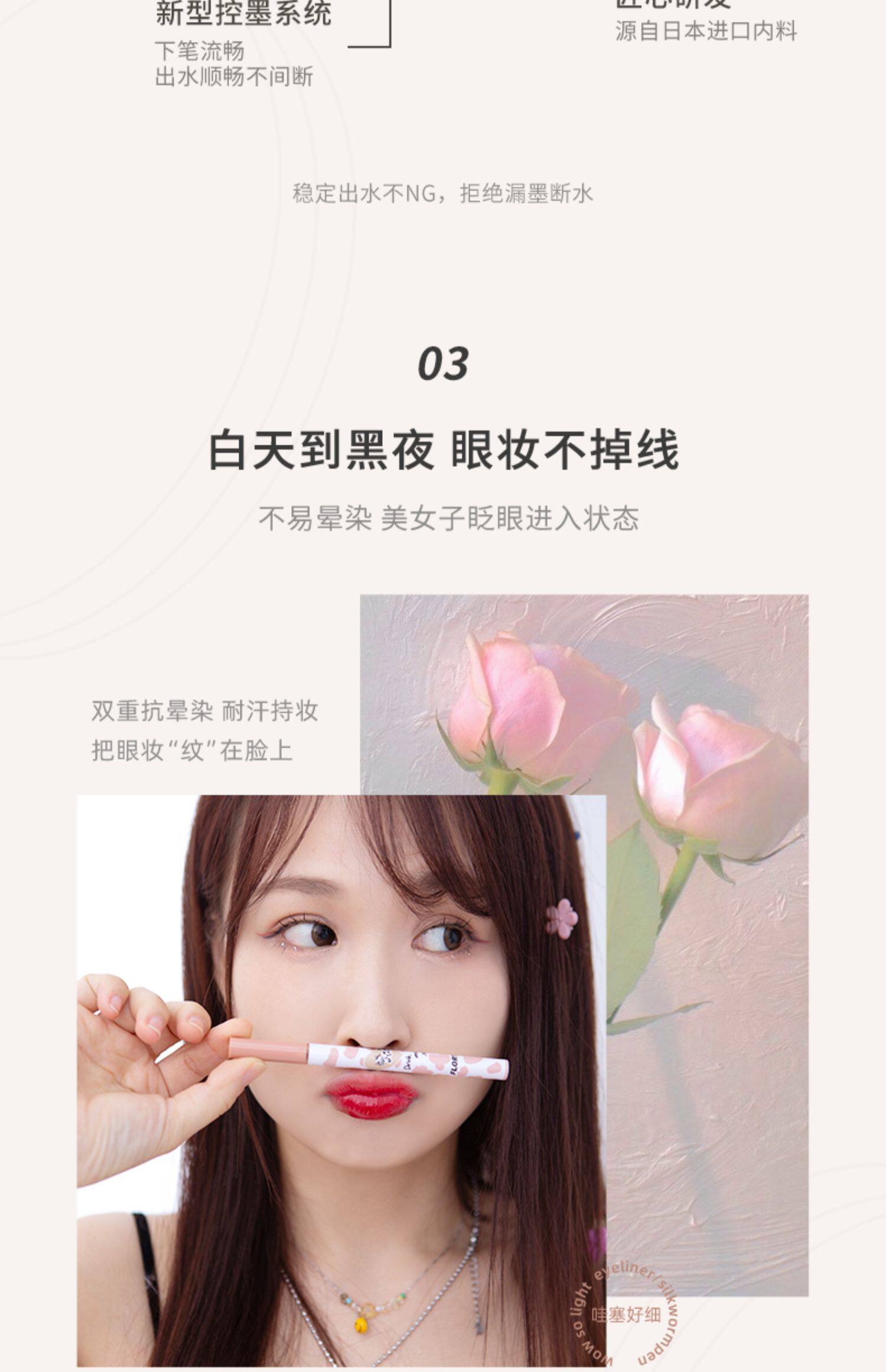 Hualoria Подводка для глаз Жидкая подводка Ручка-клей Цветок Очень тонкая осенняя ручка Leah Silkworm Коричневая Несмазывающаяся Водонепроницаемая защита от пота Долговечная Официальный