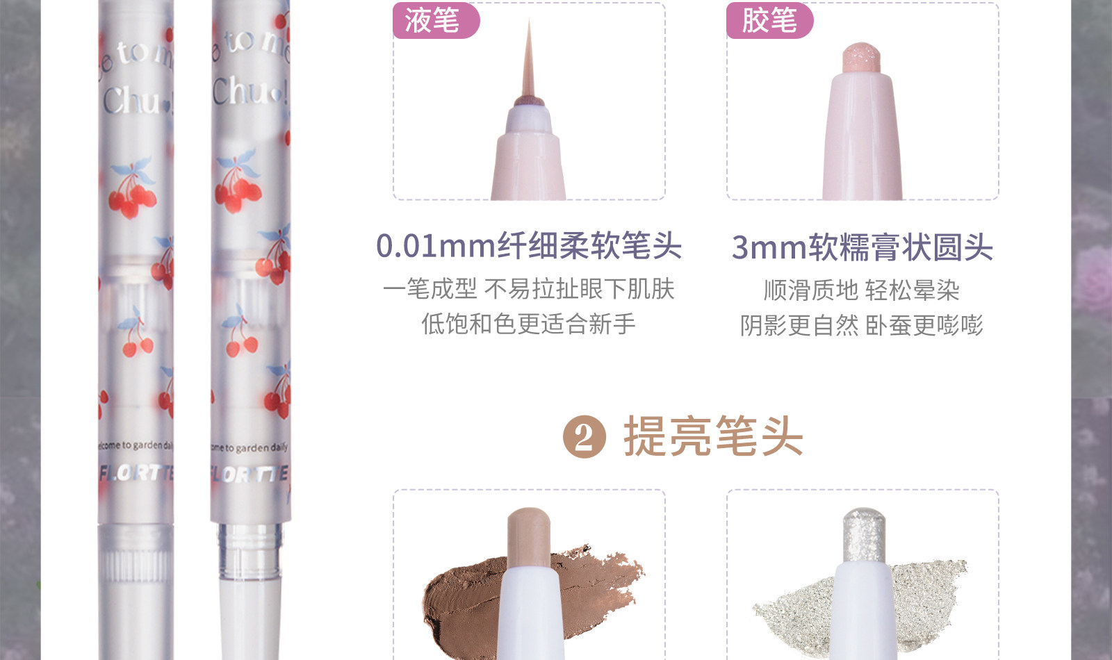 Flortte, двусторонний осветляющий хайлайтер, карандаш для глаз, создание контуров