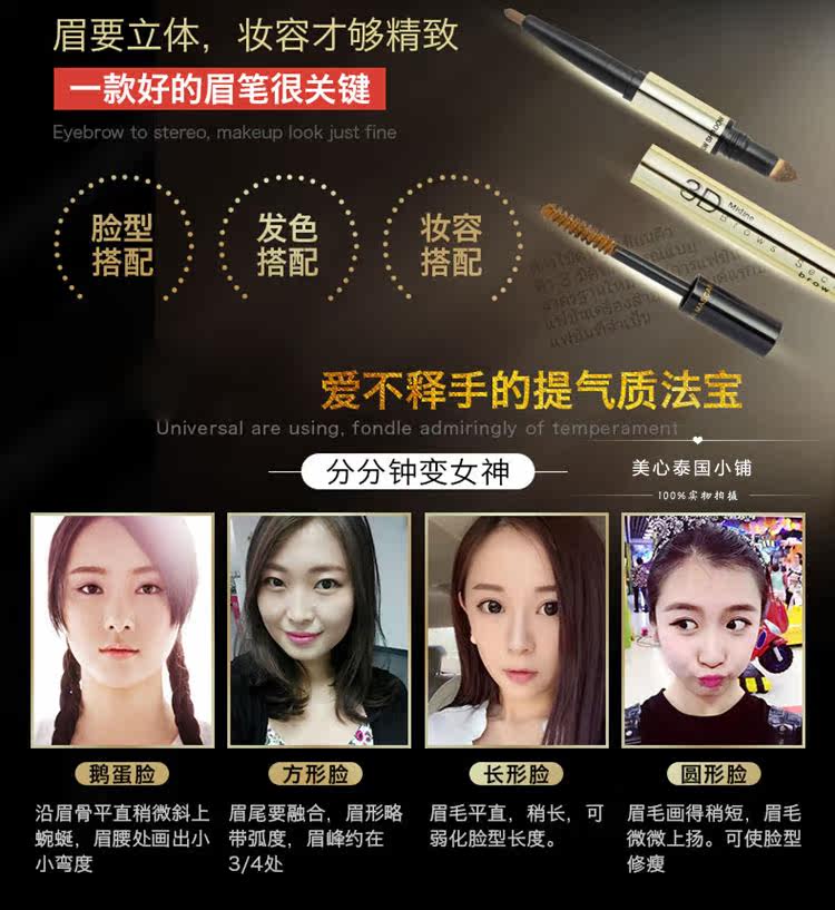 Водостойкий карандаш для бровей, трехмерная краска для бровей, Таиланд, 3D, «три в одном»