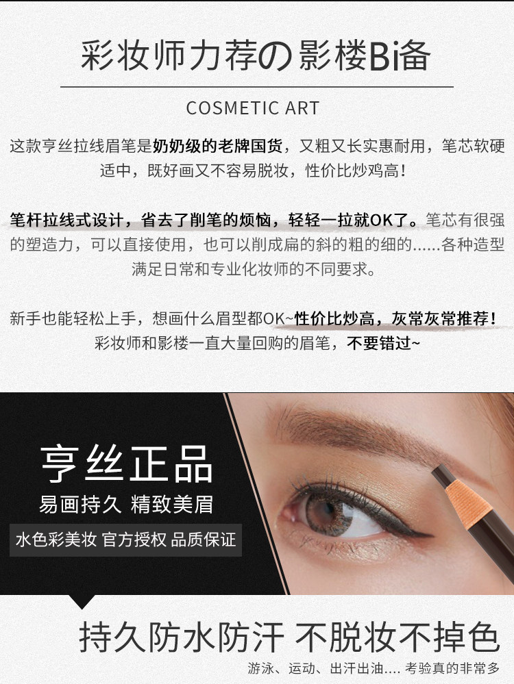 Водостойкий карандаш для бровей со шнуром, не выцветает, долговременный эффект, не растекается, подходит для начинающих