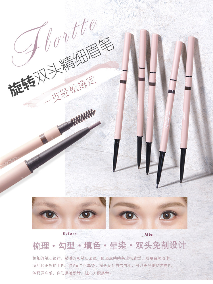 [Два кусочка бесплатной доставки, чтобы купить три, Get One] Flortte Huaololia с двойной головкой мелкий карандаш для бровей может контролировать