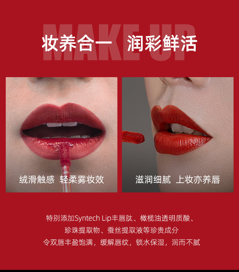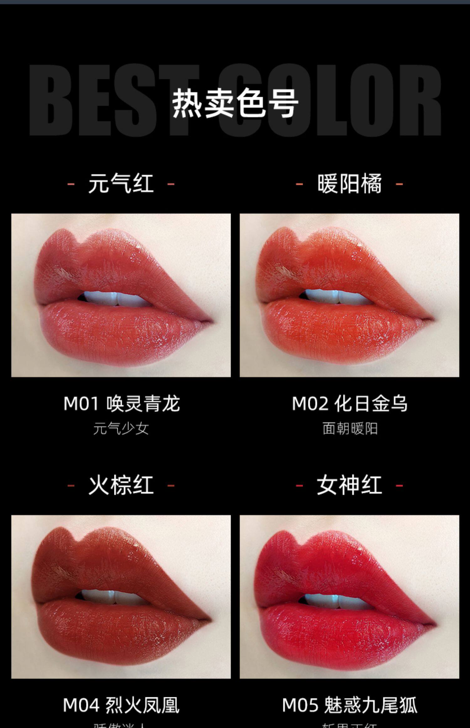 - M01 Velvet Lip Glaze называет Ling Qinglong (Yuan Qi Red)