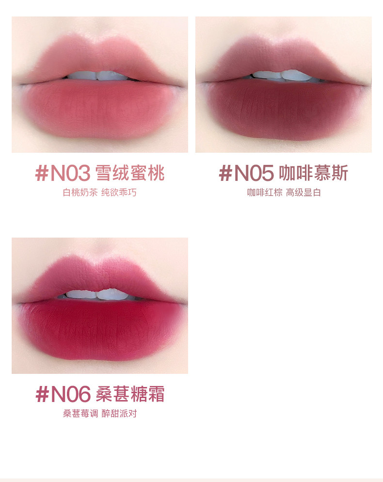 | Цвет: | N01 Благовешивание бобовой пасты, N02 Оранжевый сок мягкий сыр, N03 Lysite Peach, N05 Coffee Mousse, N06 Mulberry Frost, N07 конопляный картофельный миндаль, N09 Rose Fraile, N10 наполовину пьяный молоко таро, N11, N12 Love Lava |