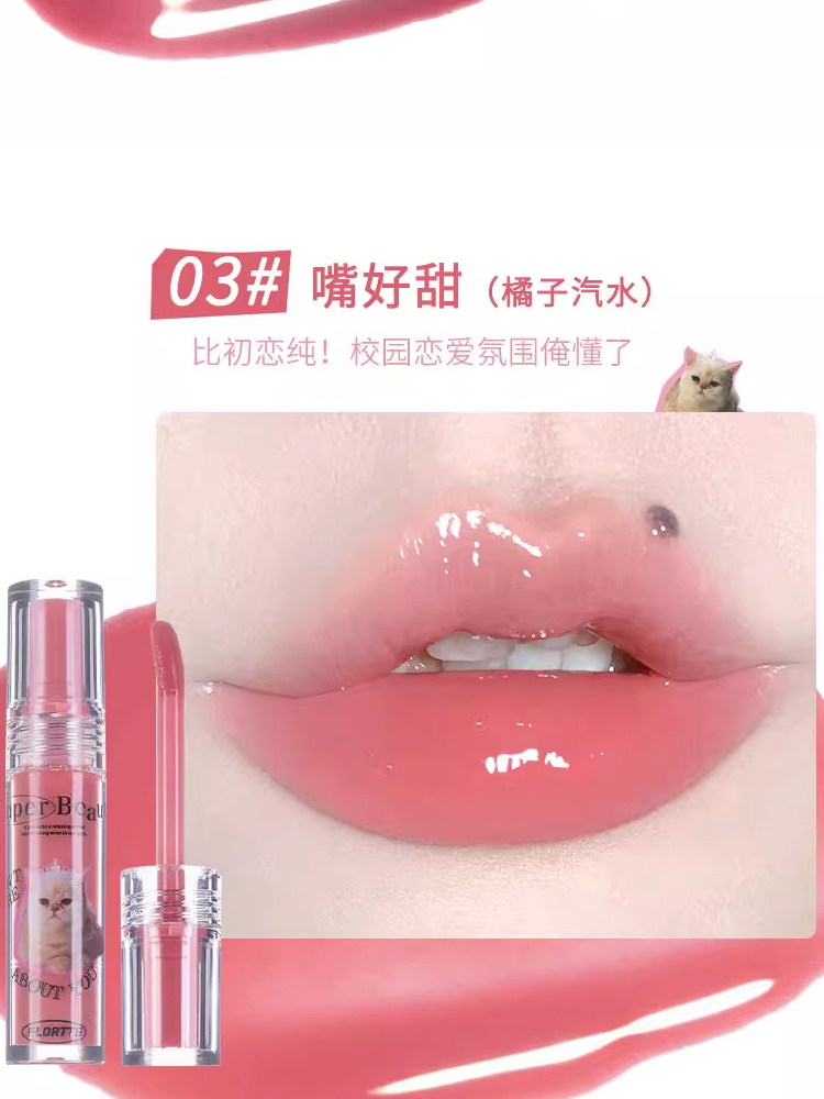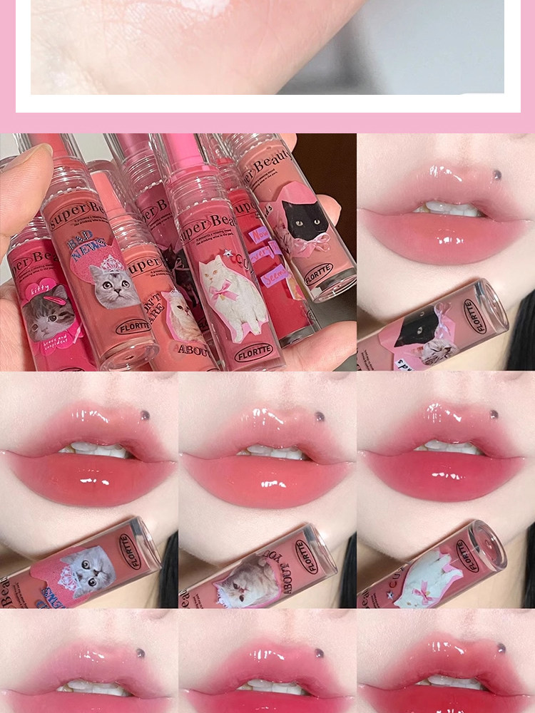 Flortte, эссенция, блеск для губ, стеклянная помада, уход за губами, зеркальный эффект