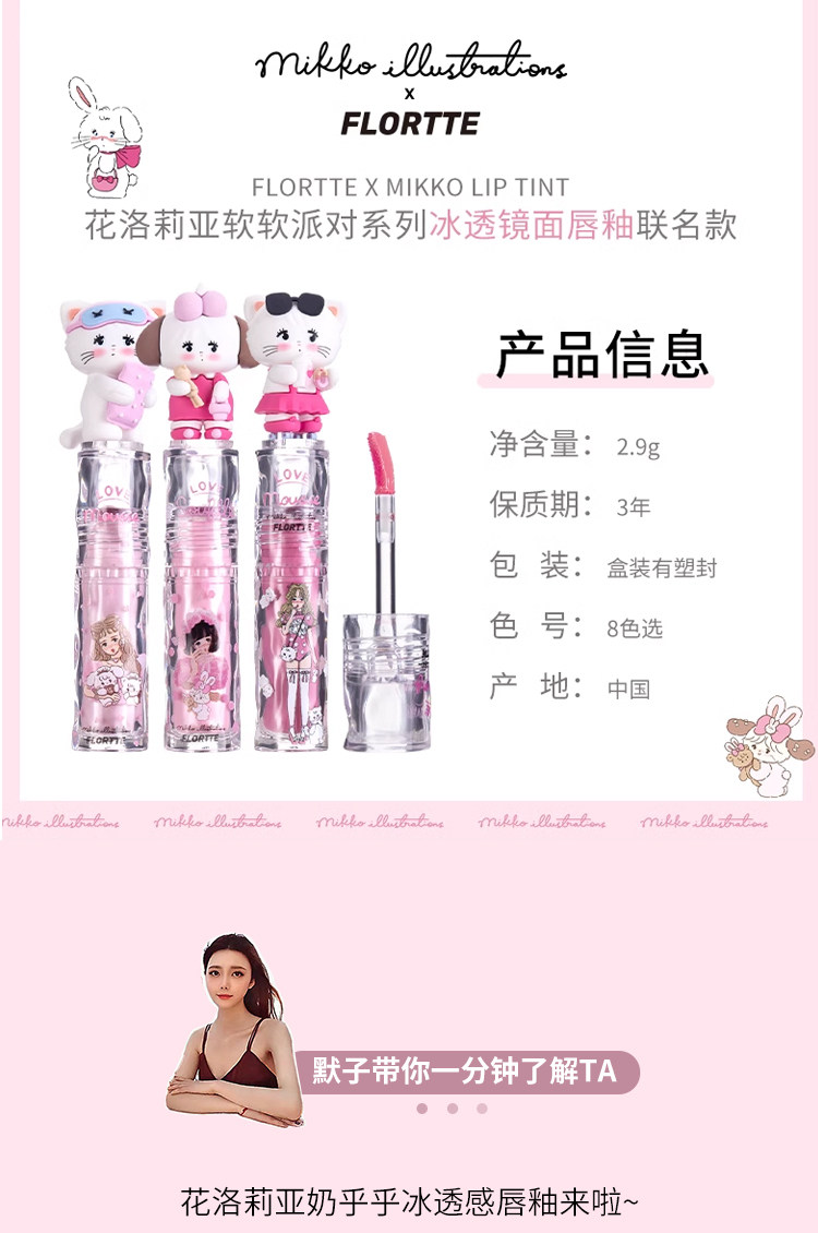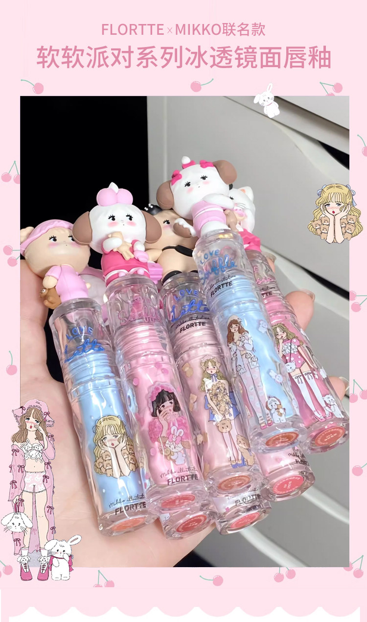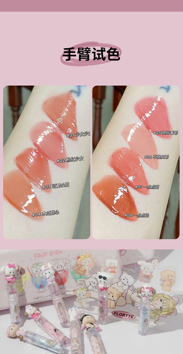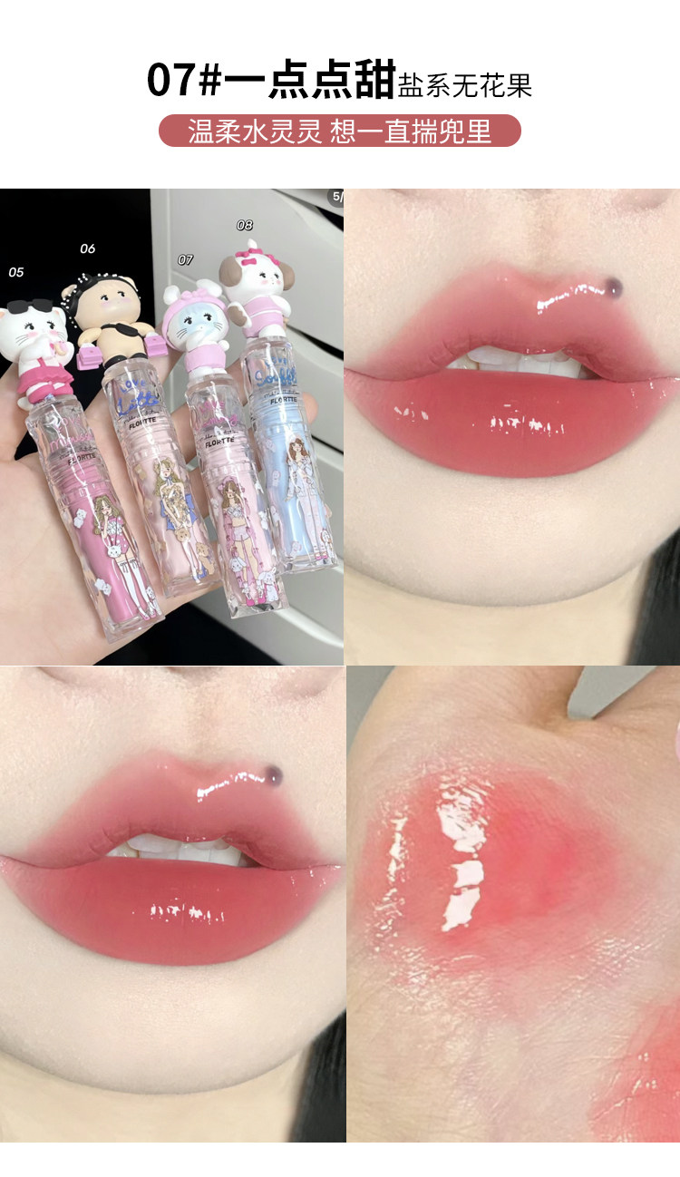 Flortte, бальзам для губ, увлажняющий блеск для губ, помада, зеркальный эффект