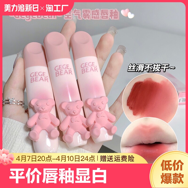 Gege Bear Gege Bear Нежная глазурь для губ Мягкий туман Матовая грязь для губ Студенческая вечеринка Отбеливающая губная помада без макияжа Доступная помада