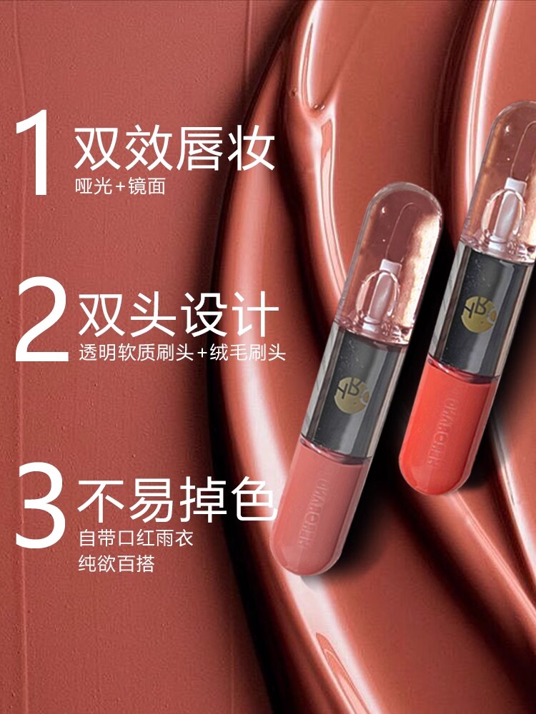 Двусторонний блеск для губ, увлажняющий бальзам для губ, помада, прозрачный стеклянный дождевик, зеркальный эффект, 2 в 1