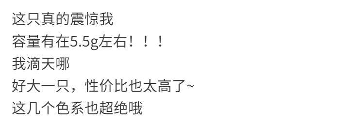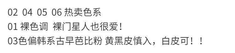 | Цвет: | 5,5 г 01# кофе миндального молока, 5.5g 02# out of Stock Bean Paste, 5,5G 03#官网, 5,5 г 04# плазменная роза, 5,5 г 05# СИЛИКАННЫЙ АБОР, 5,5G 06# злой девочка черный чай, 01# миндальное молоко+ 03# Гузао Барби, 03#Древняя Барби+06#злые девушки черный чай, 03#Древняя Барби+05#Низкий насыщенный абрикот, 【Любые два единицы】 По умолчанию отправить 01+02 Обратитесь к службе обслуживания клиентов. |