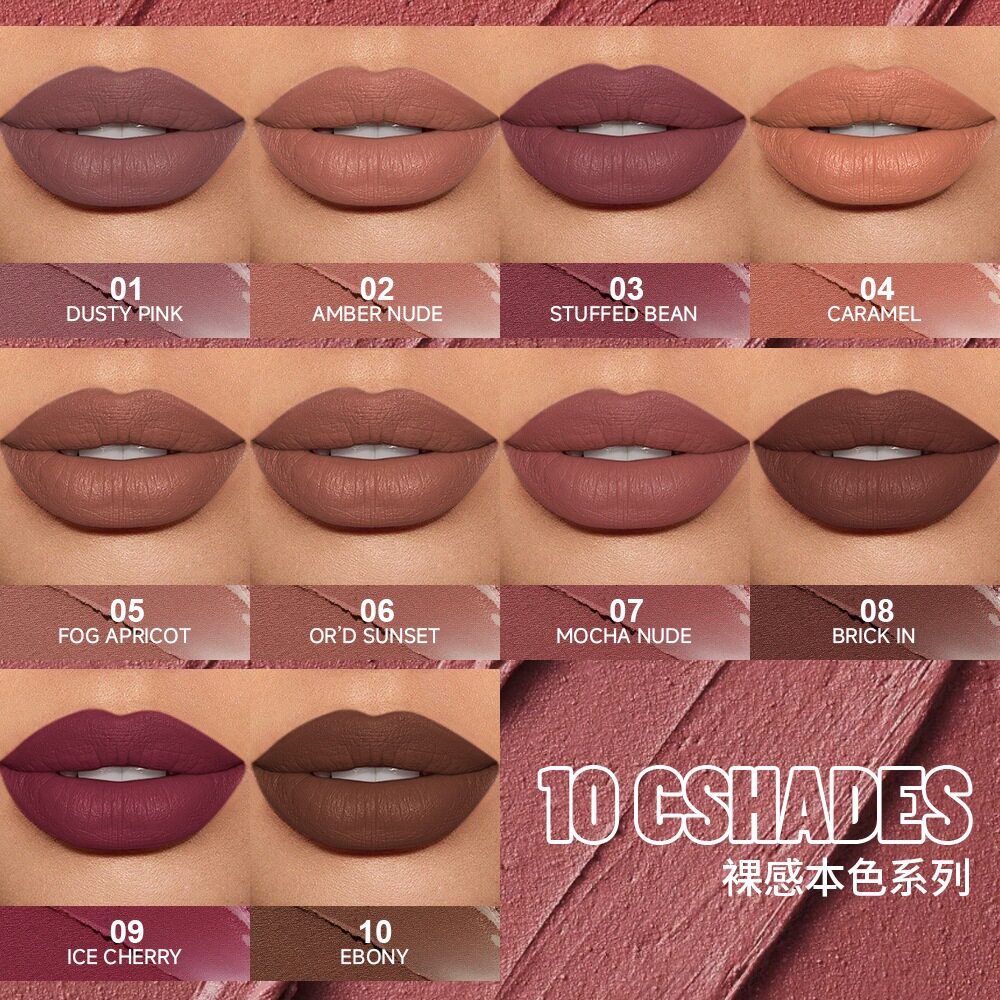 Матовая нюдовая помада, водостойкий блеск для губ, база под макияж, европейский стиль, 10 цветов