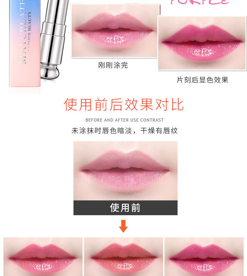 Бальзам для губ, увлажняющая помада, цвет, не выцветает, долговременный эффект