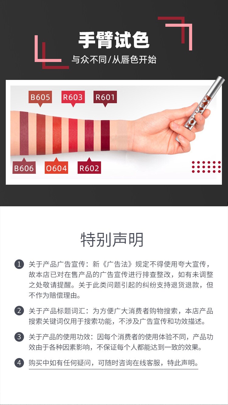 | Цвет: | Цвет сливы R601 (горячая продажа), R602 вишнево-красный, R603 настоящий красный (горячая продажа), O604 Морковный цвет, B605 Чай с молоком апельсин (хит продаж), B606 Цвет пасты из бобов, B607 Чай с миндальным молоком (хит продаж), R608 карамельно-красно-коричневый (хит продаж), R609 Rock Sugar Tomot, O611 Maple Jinger Orange, 612 Ягодный мусс, R666 |