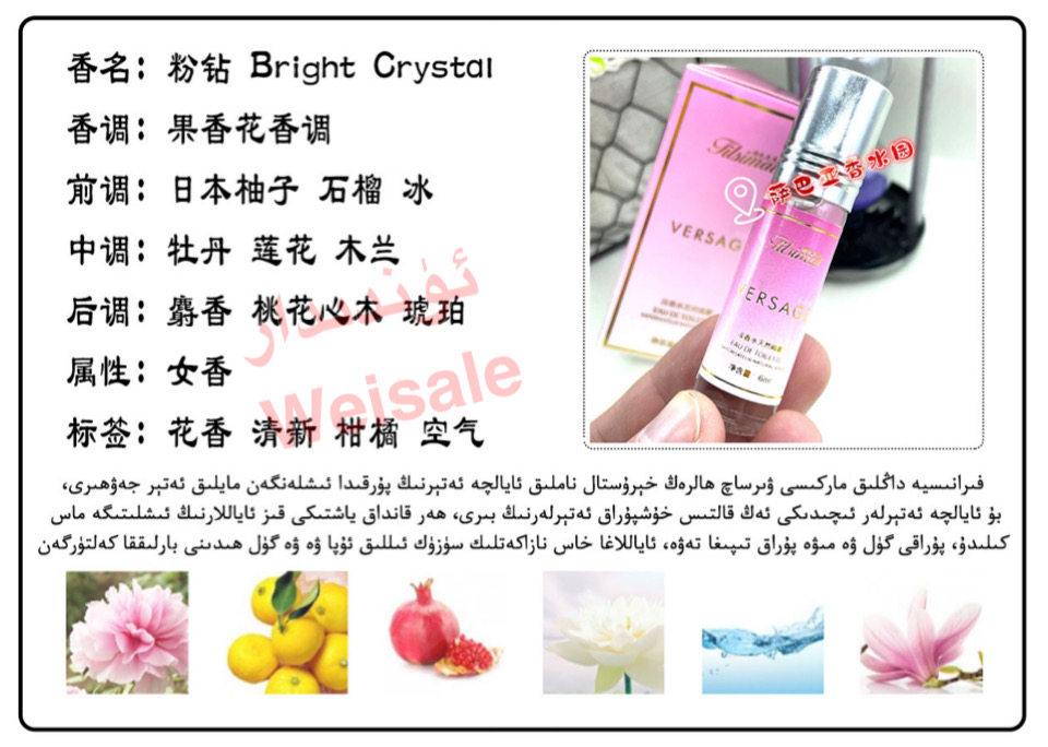 | Аромат: | Шоколад, Вода энергия, Дикая местность, Суданский человек, Мадина, Виски, Любовь, Малжиан, Роза нейтральная, Мисс Гуангён, Миссис мисс, Розовая бриллиантовая леди, Любовь красный: аромат цветочных фруктов, Итак, моя леди, Мисс Хуайю: аромат цветов холодной воды, Мисс Йе Йе: Цветочный аромат восточная мелодия, ВЫСОКОВАНИЯ ФАНКА: Аромат цветочных фруктов, Роя Блю, Роя Грин, Облачный свет и свет, 212 мужчин, Симпатичный нейтральный: зеленый аромат цветочного аромата, Черный фильм, Серебро |