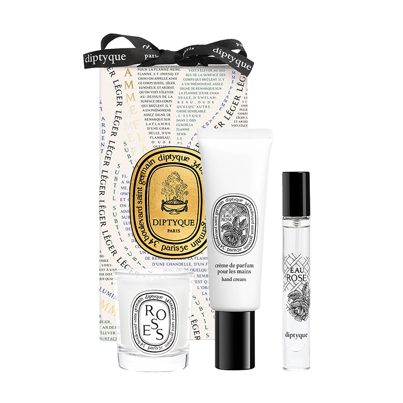 Diptyque, парфюмированная подарочная коробка с розой в составе, духи для путешествий, крем для рук, свеча