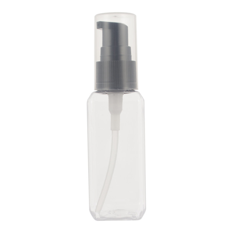 Название продукта: прозрачная квадратная бутылка объемом 50 мл + помпа для лосьона.