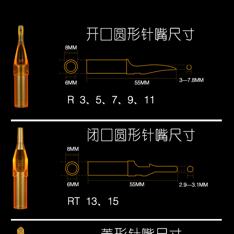 Рот иглы золотой акулы, синий рот иглы, одноразовый, длинная игла, рот иглы, открытая закрытая RRTDTMFT, рот иглы для татуировки