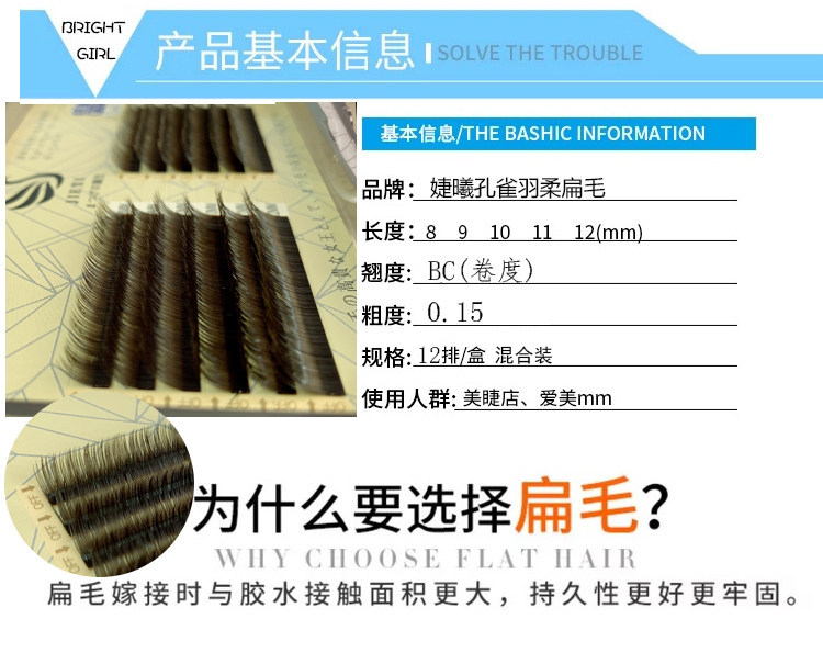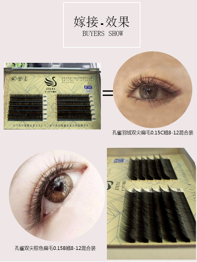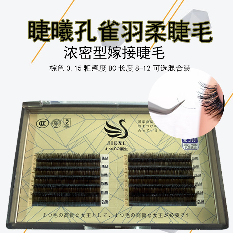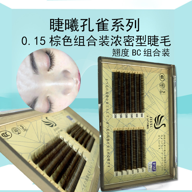 Jiexi caramel color peacock peathers Двойной кончик плоских волос с зелеными коричневыми плоскими волосами 0,15 мокко глубокие кофейные ресницы