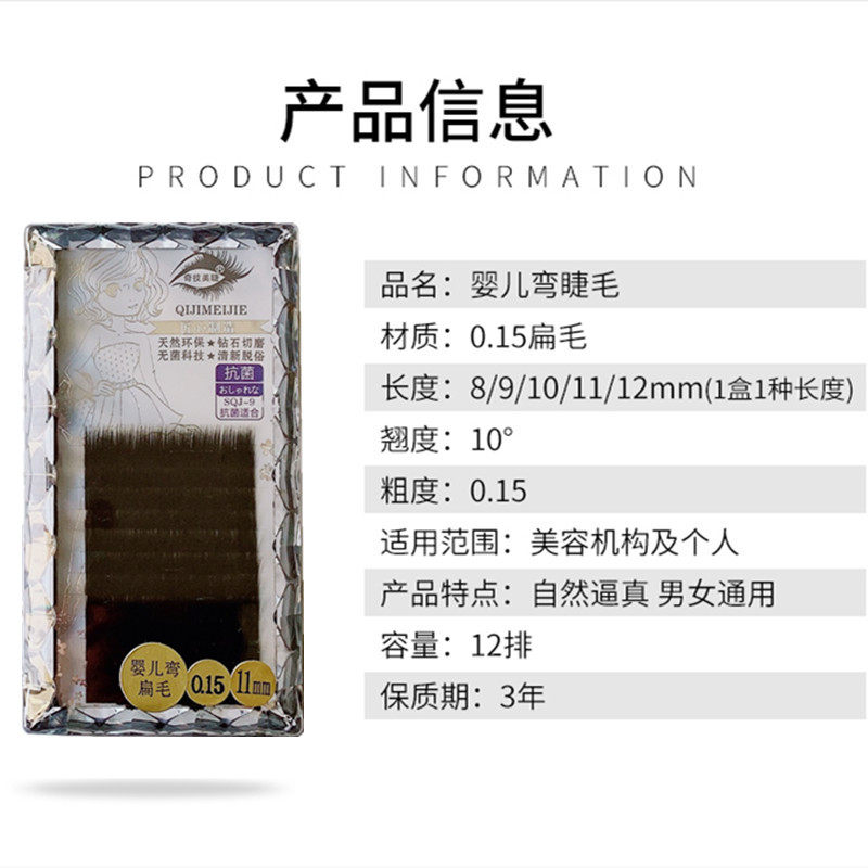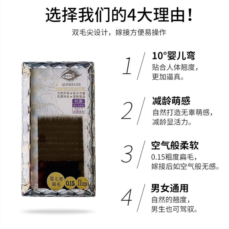 Miracle Baby слегка наклоненные плоские волосы прививка ресниц Baby Curving Citple 0,15 с двойным наложенным толстым матовым матовым 10 градусами I