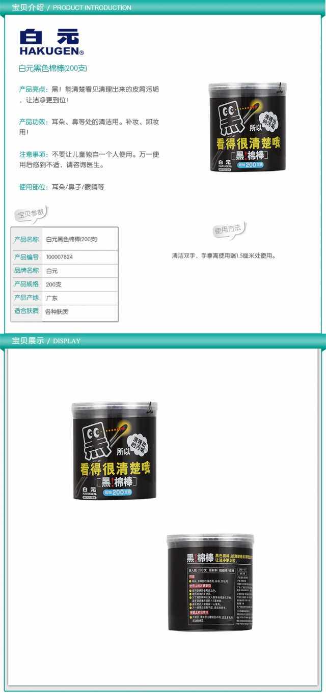 Watsons, черные ватные палочки, хлопковая гигроскопическая вата, 200 шт