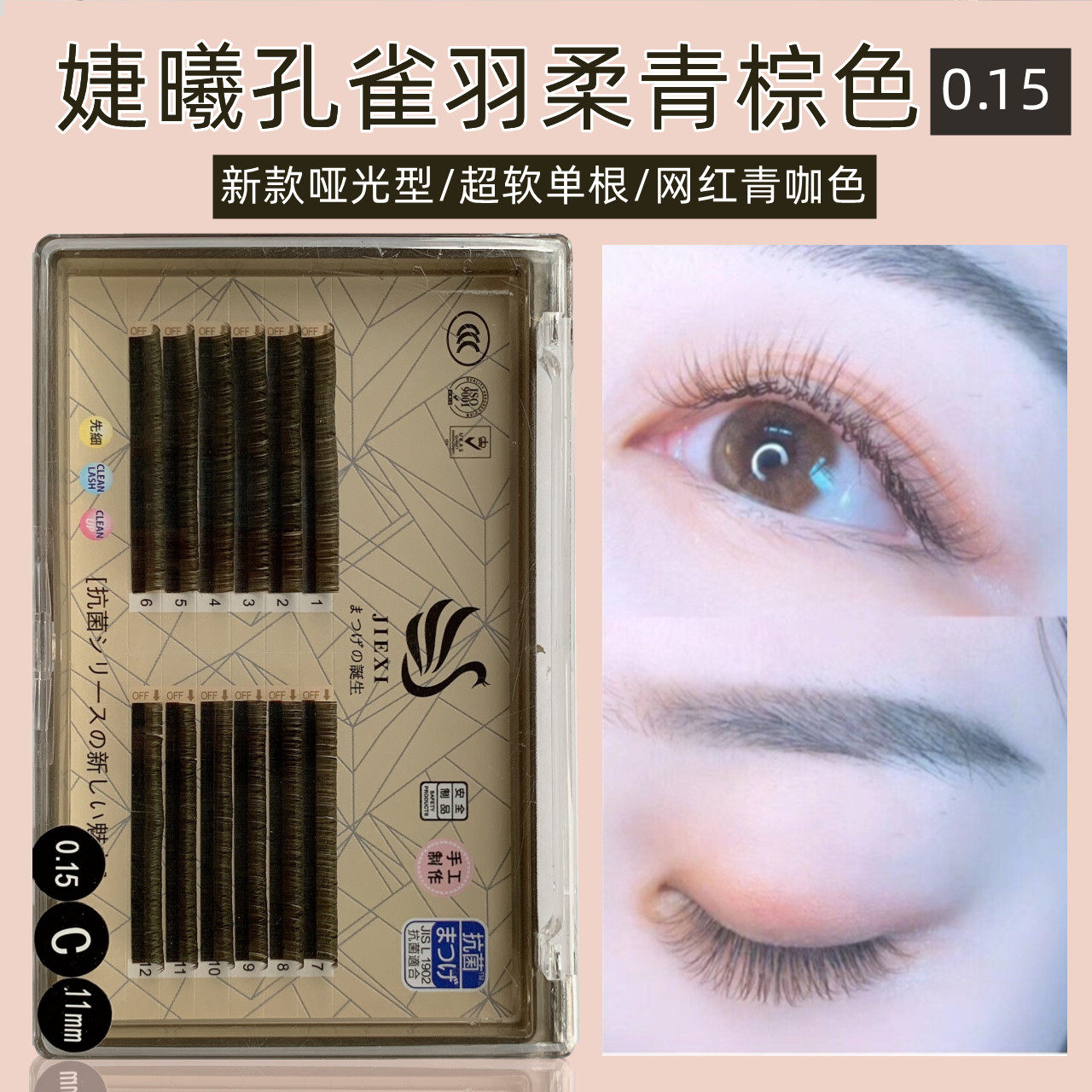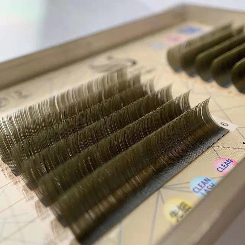 Jiexi Peacock Brown Caramel Color Коричневые плоские волосы натурально 0,15 однообменные карамельные карамельные душные зеленые кофейные ресницы, привитые ресницы