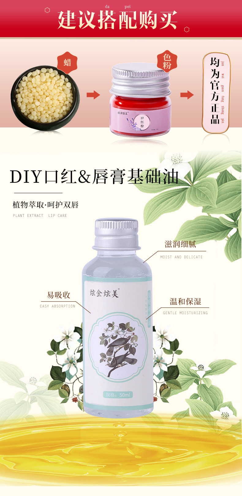 炫金炫美 Помада, базовое масло, прозрачный миндальный бальзам для губ