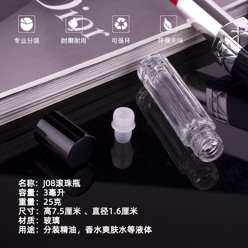 Стеклянная тара, духи, масло, шариковый массажер, портативная бутылка, 3 мл, легкое нанесение