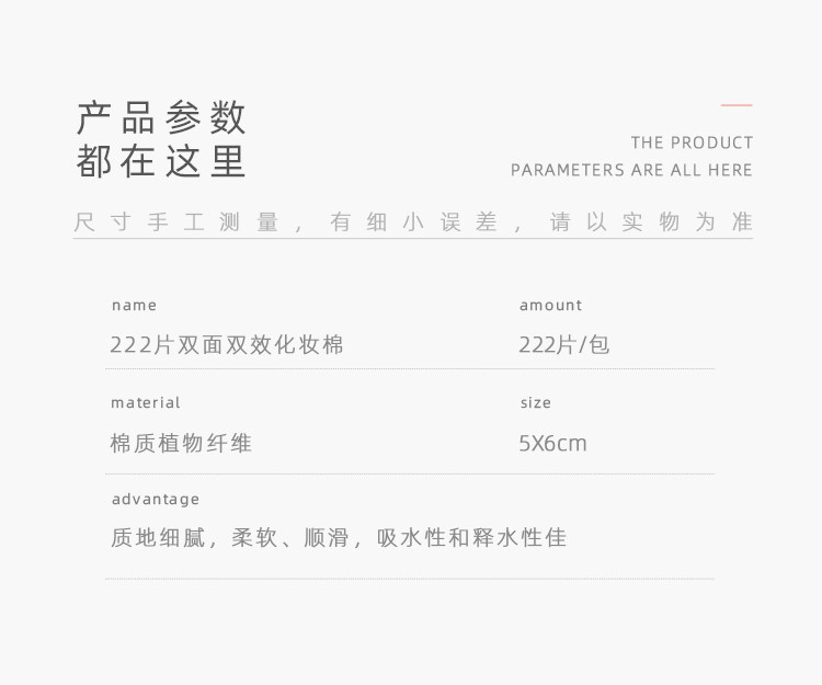 Влажные двусторонние хлопковые ватные диски для лица, очищение лица, 222 штук