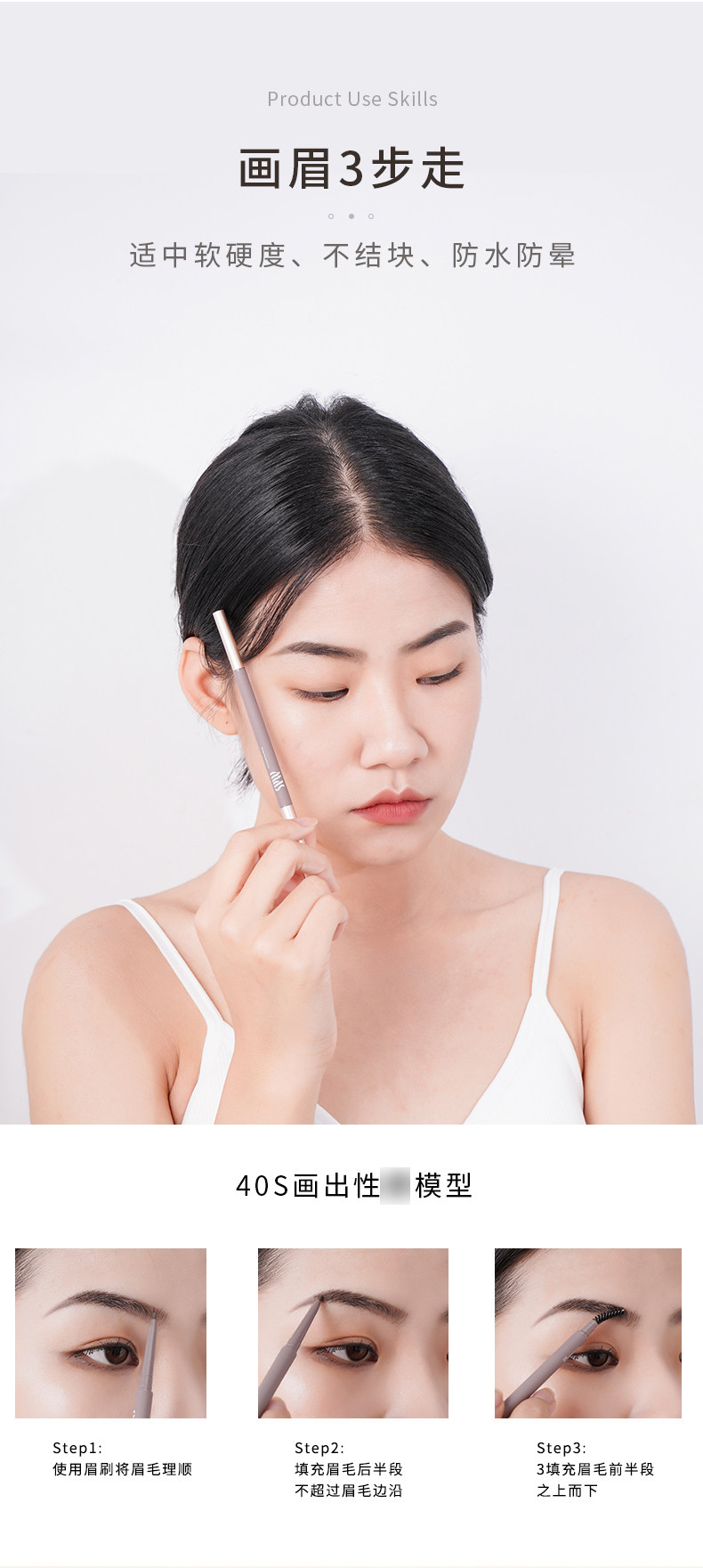 Двусторонний скульптурирующий водостойкий карандаш для бровей, долговременный эффект, не стирается