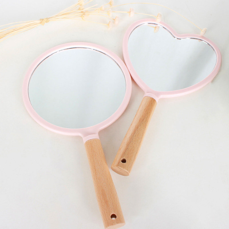 Деревянное зеркало, портативная большая круглая ручка, для салонов красоты