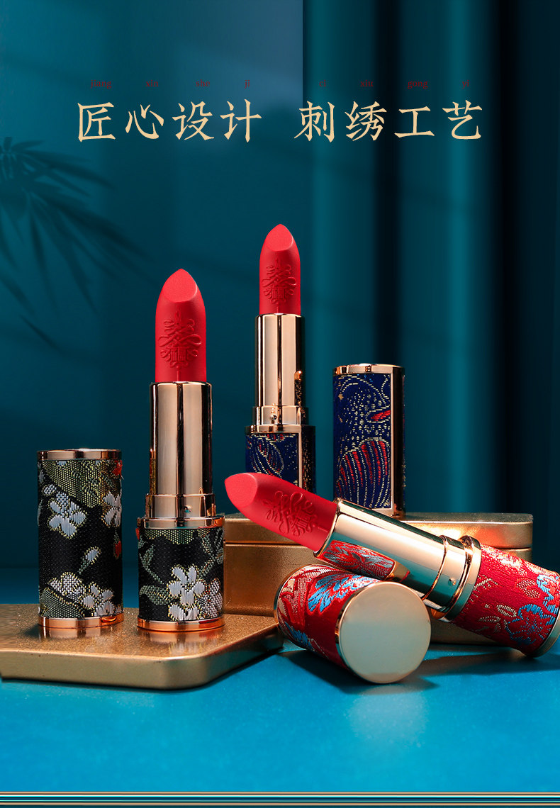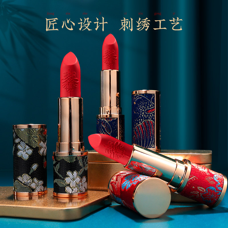 百罗 Сатиновая помада в китайском стиле Palace Retro 12.1 Труба помада DIY DIY помада 3D -помада круглая трубка
