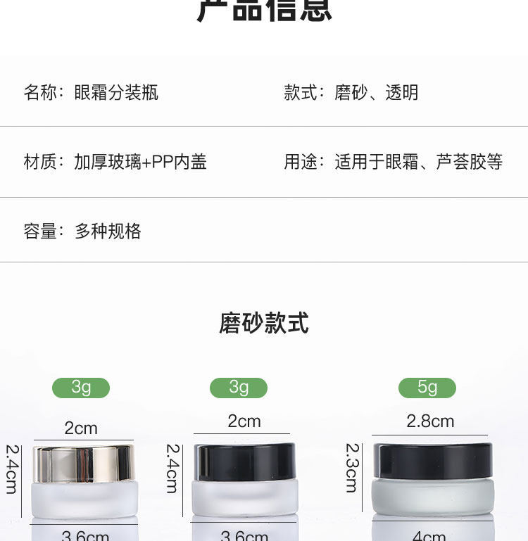 Крем для глаз, прозрачная баночка для крема, портативная маленькая матовая бутылка для путешествий, 3 грамм, 5 грамм, пробник