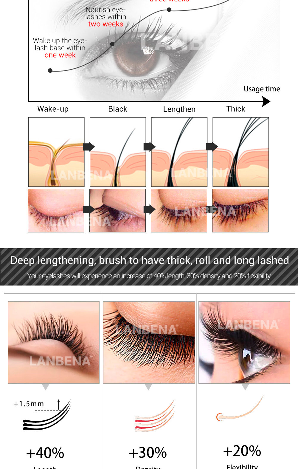 LANBENA Сыворотка для роста ресниц, 7-дневный усилитель для ресниц, более длинные, густые ресницы, усилитель для ресниц и бровей, уход за глазами