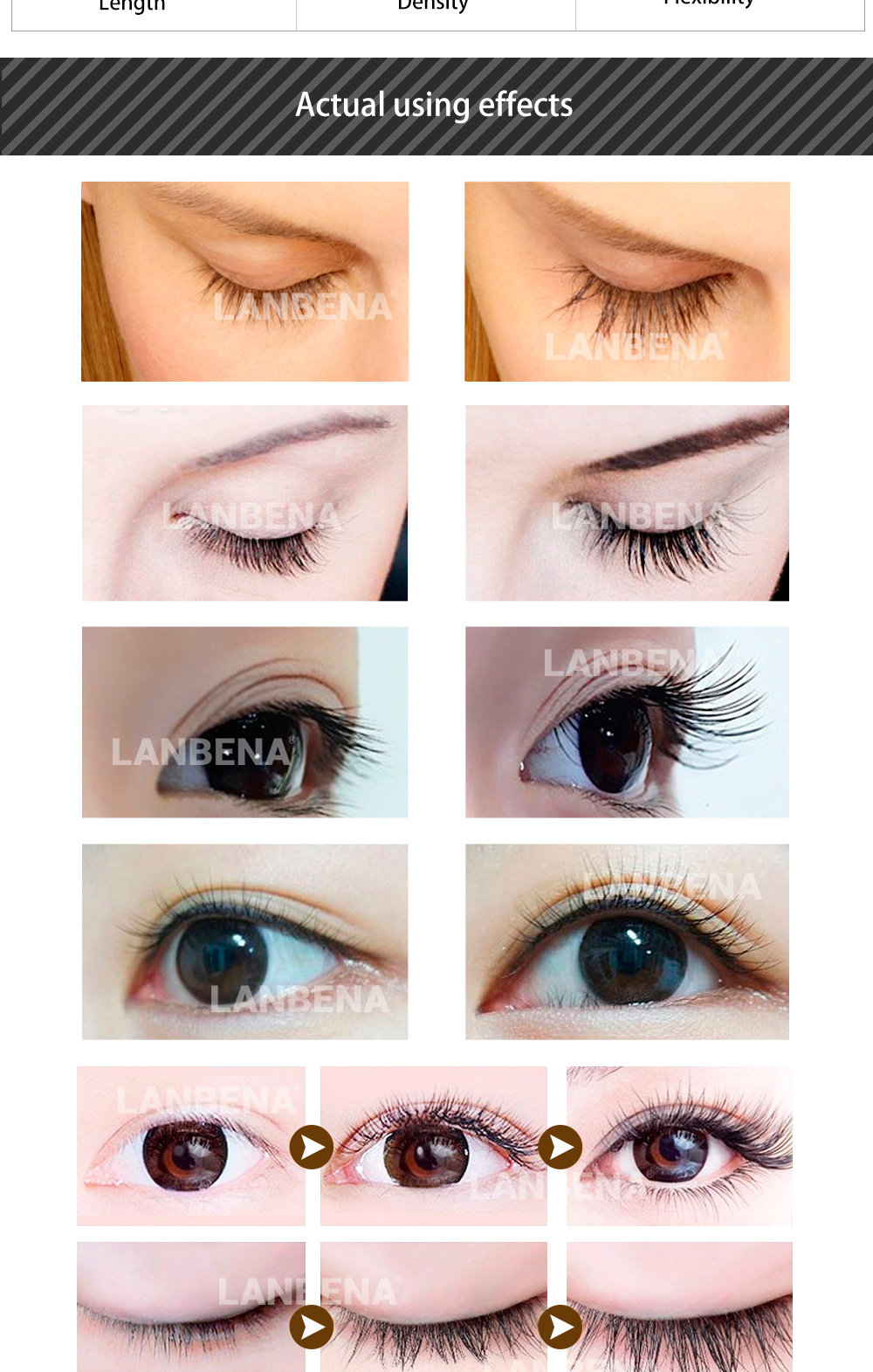 Эффективность: увеличение длины, толщины и темноты ресниц