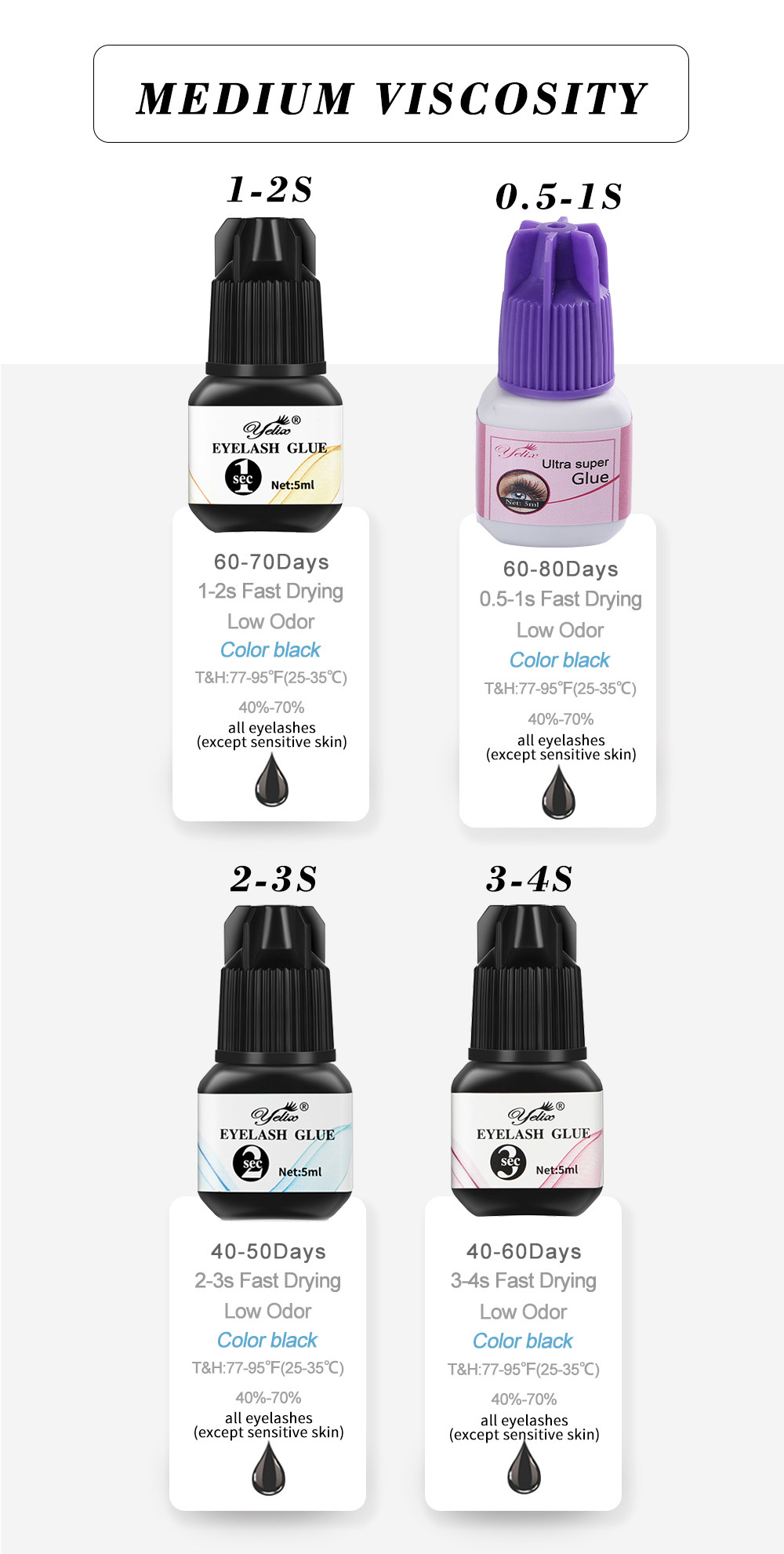 Yelix eylash удлиняющий клей 0,5-1 с быстрый сухой индивидуальный