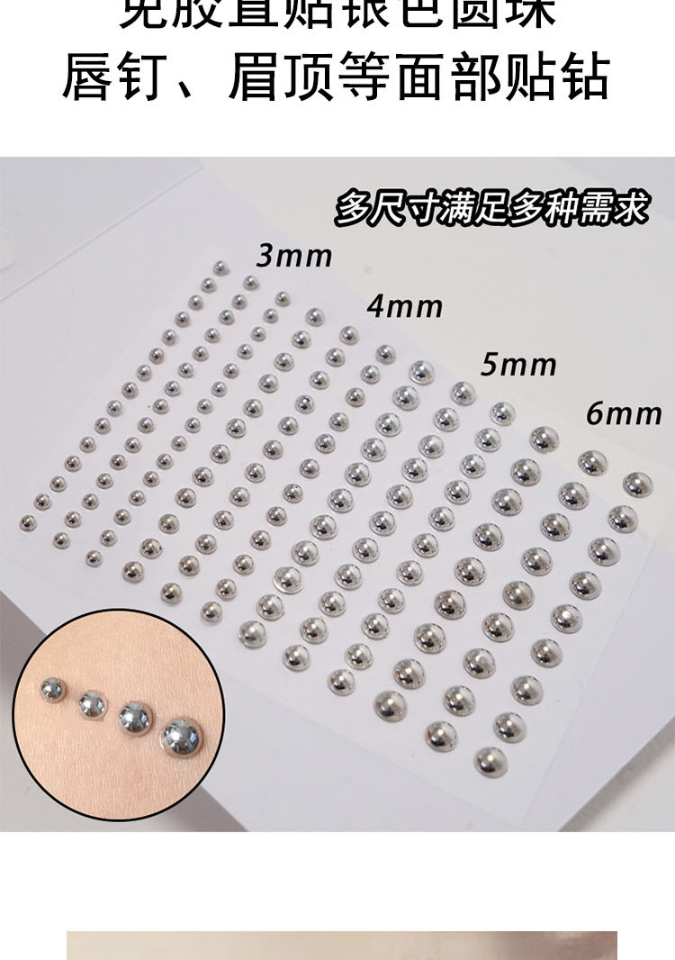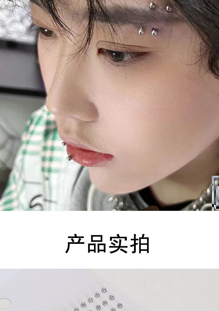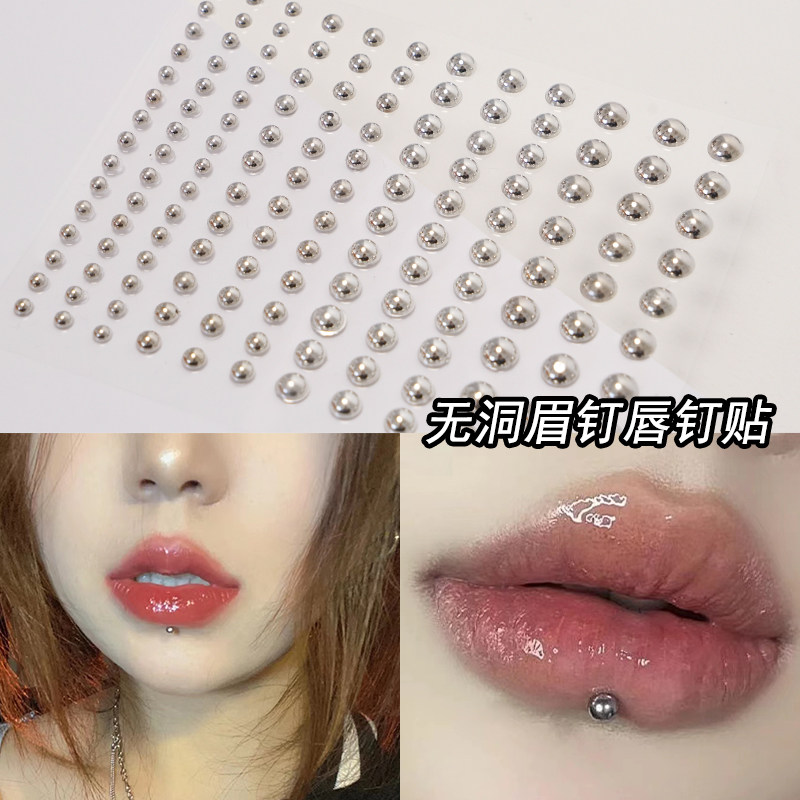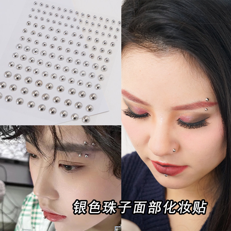 Накладные наклейки на ногти для бровей без отверстий, кости бровей и ногти в носу, серебряные бусины, без перфорации, креативный макияж Yabi для украшения лица