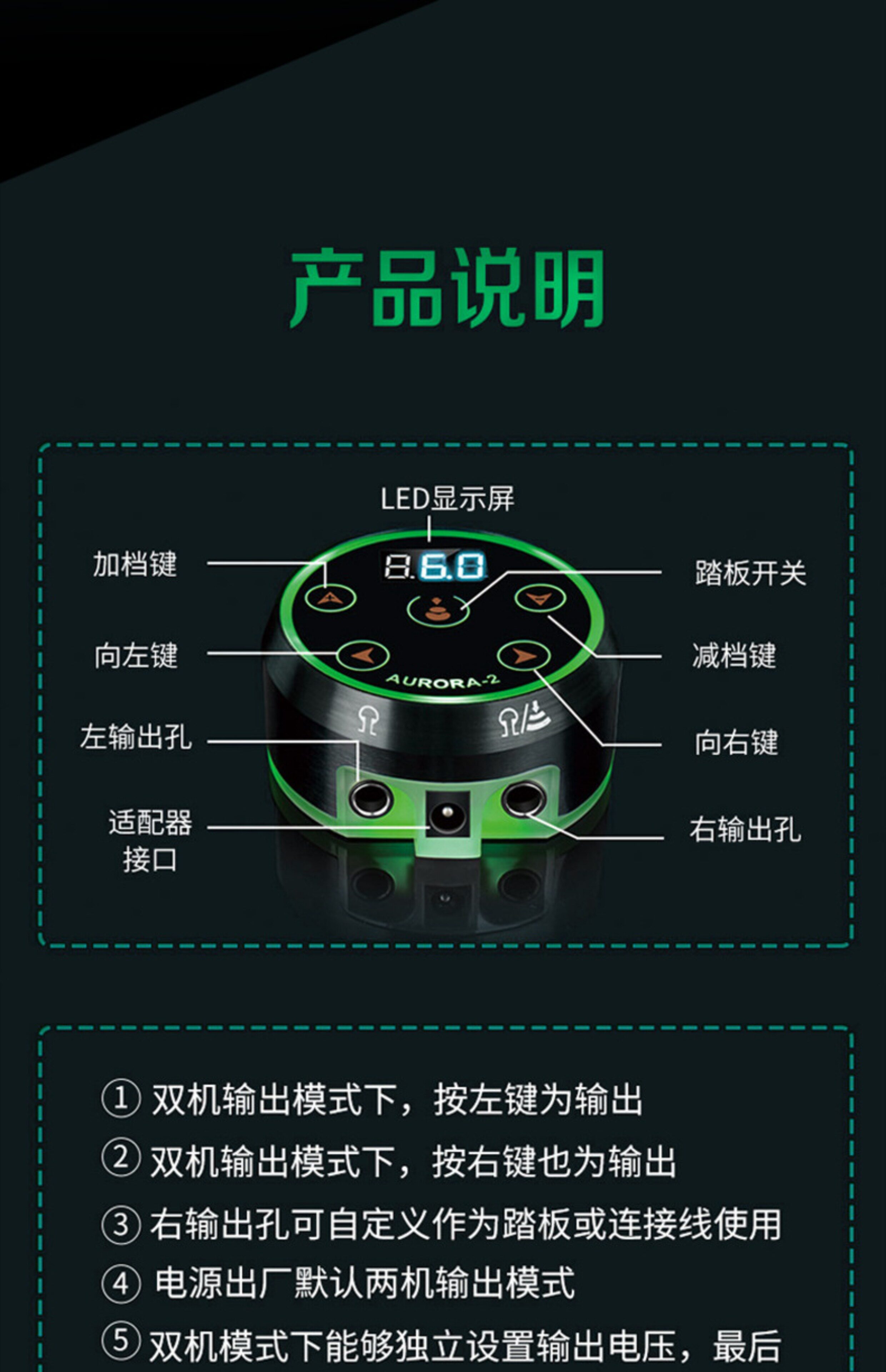 Aurora Two -Generation Tattoo Power Power Supply High -Sower Transformer One -Click Startup No Foot 3A Высокая мощность высокая мощность