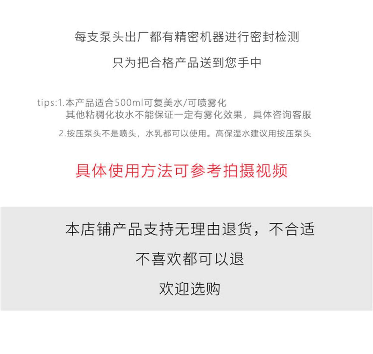 Подходит для поршневого насадки с брызг на 500 мл. Нажмите на головок насоса и мягкую кожу, нажмите на насос на насос.