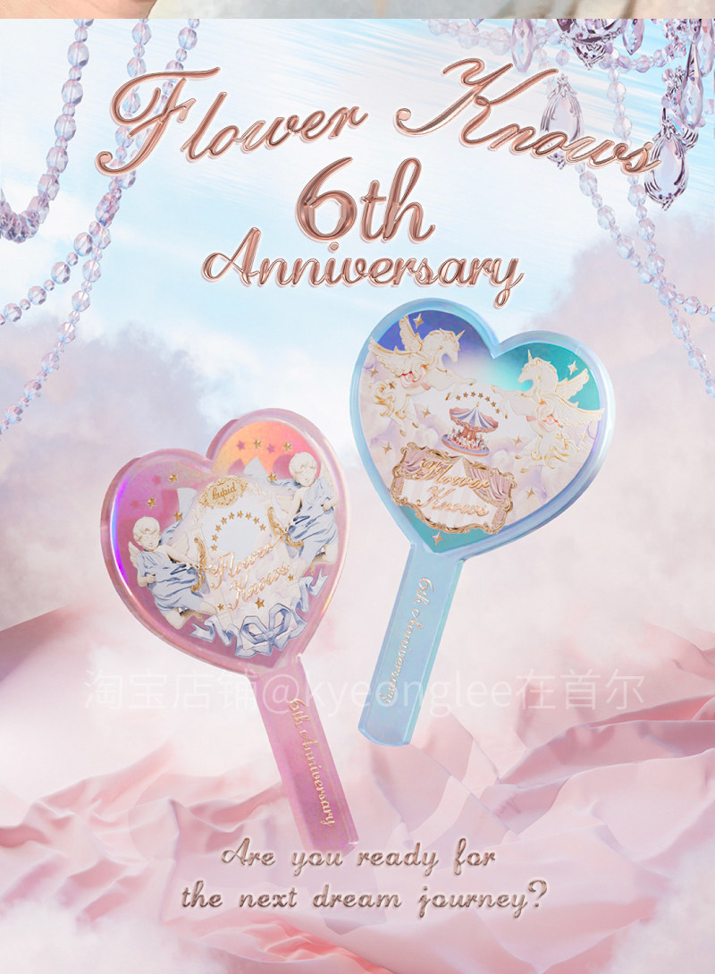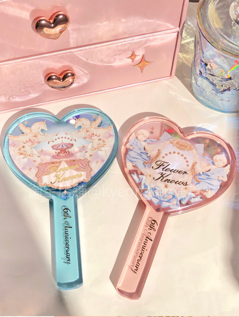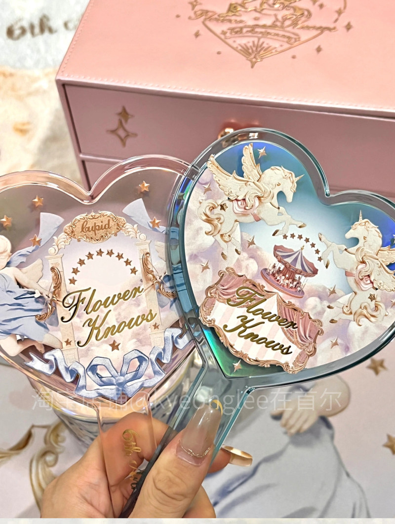 Хуа знает 6 -й годовщина портативного зеркала розово -розовый купидон синий единорог