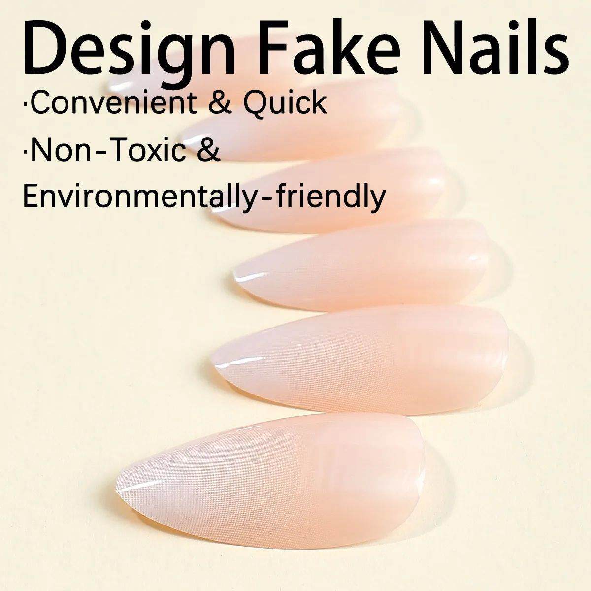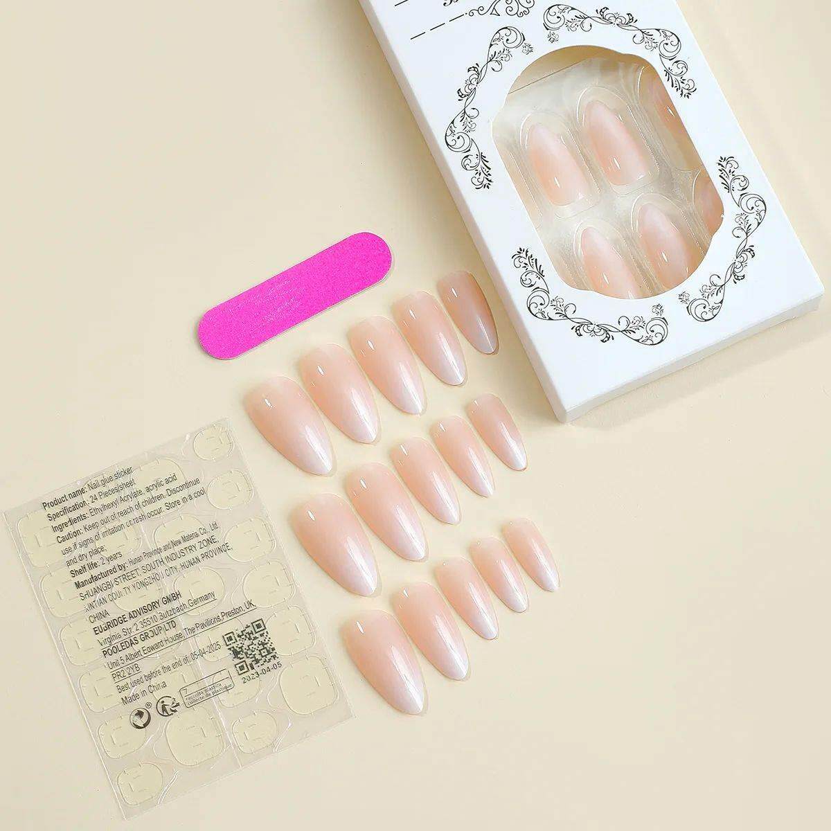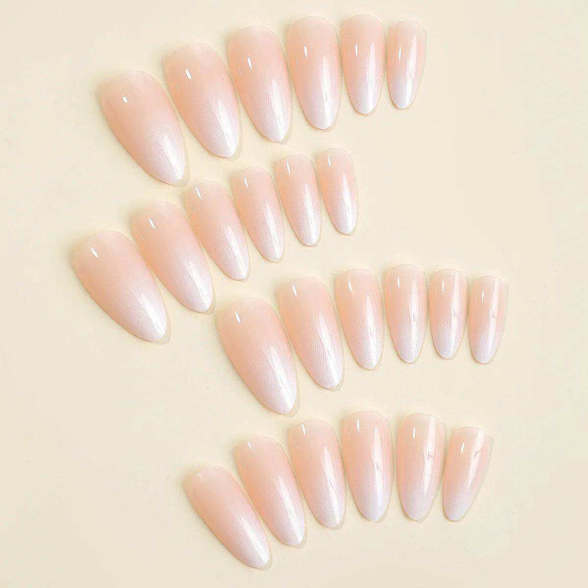 24pcs розовые градиентные миндальные фальшивые гвозди просты с французским D