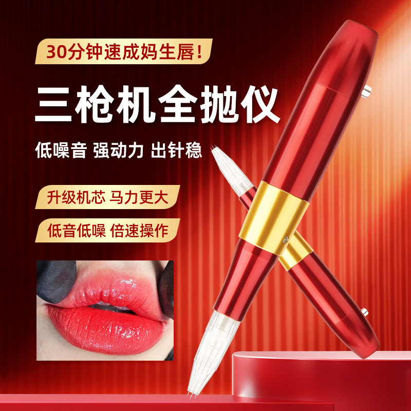 Машина для татуировки и вышивки «Три мушкетера», машина с тремя пистолетами, машина для полуперманентной татуировки губ, универсальная машина для бровей и глаз, полностью полированный инструмент, инструмент для татуировки