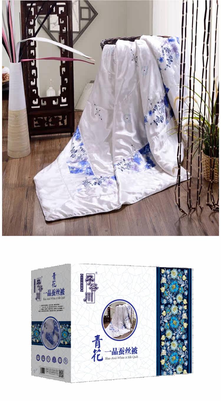 Семейный Ziguchuan Семейный текстиль сине -белый шелковой одеял, чтобы разогреть, настоящий шелковый шелк, расходные материалы для кроватей